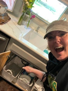 Yes, I have a confession. Having added a “secret” basket for dishes under the sink… for dishes that need to be washed is the best idea ever.. after all, it fills up in a blink!