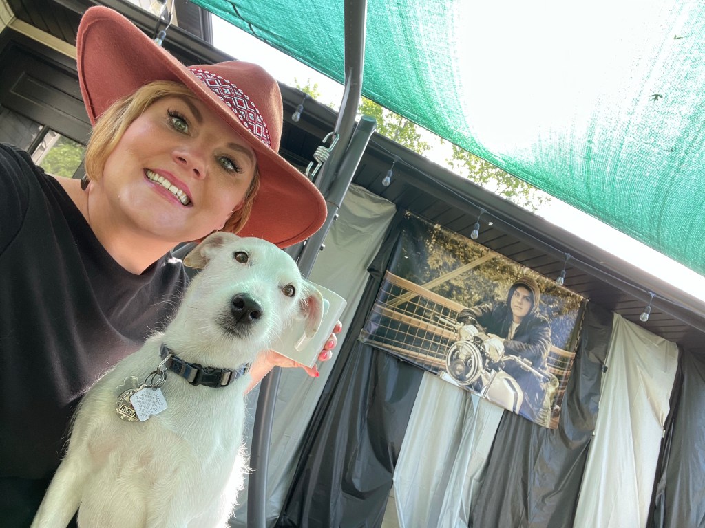 I fit in a little time this morning before my work shift to enjoy a cup of coffee and hang with my dog, Oscar while watching a cardinal eating from our bird feeder, chat with my mom on the phone and feel the sunshine on my face.. taking it all in, in our beautiful yard!