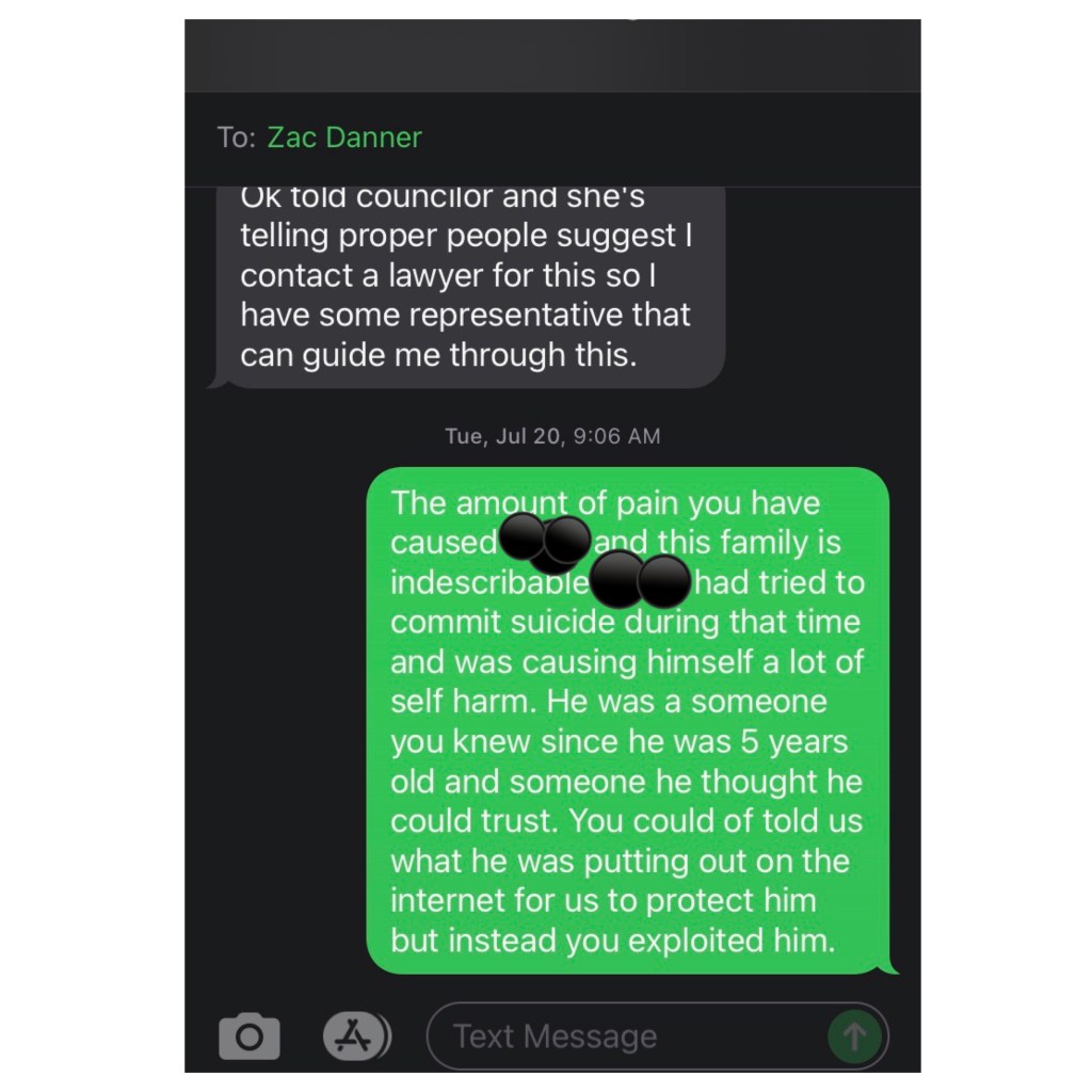 I can’t remember any signs of you being interested in our kids. You were “party boy” uncle Zach. Undercover you are a pedophile! You convinced our son that you are gay and interfered with his sexual development. What you really are is a pedophile! I hope the people with kids in their lives see these words and keep you away from their children! I know you have allegedly dated individuals who have children. I would guess you are more interested in their kids. I honestly will never understand how you were this person. We thought you were an upstanding guy. You were one of the few friendships we entertained because you jumped right in on our ongoing renovation projects at our home and business. We thought you were like us, hardworking and trustworthy. Finding out you are a monster has been the most gut wrenching thing to ever go through.