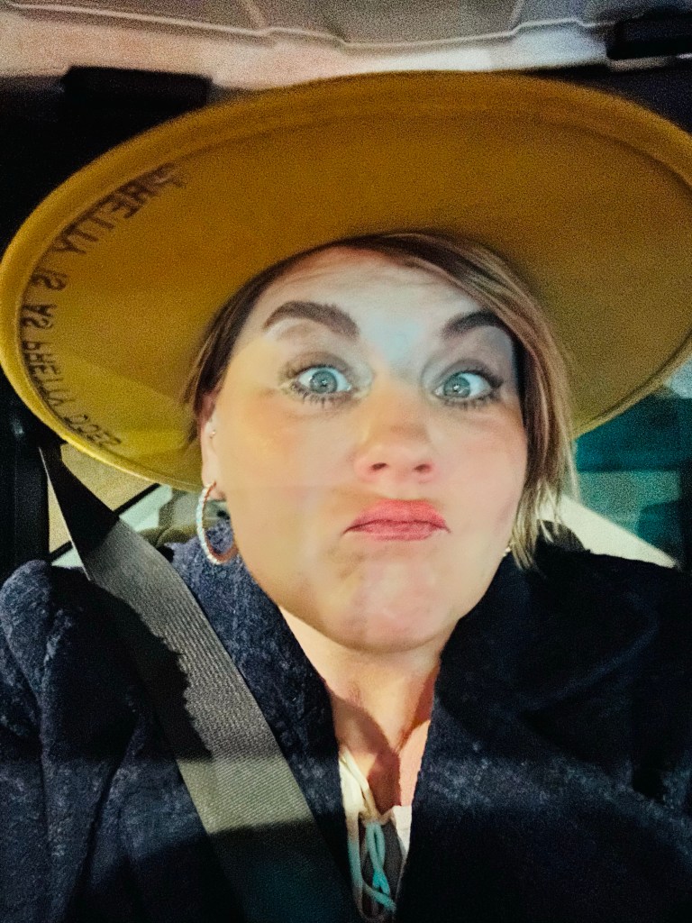I am including this photo of myself.. sitting at a stop light on the way home, feeling so human, a bit wired and ready to take on the world; after a skinny vanilla latte with extra shot of espresso that I downed ..at the point I thought we’d be on a three hour escapade out of town. Maybe some gift wrapping will take place.. keyword>> maybe!😵💫