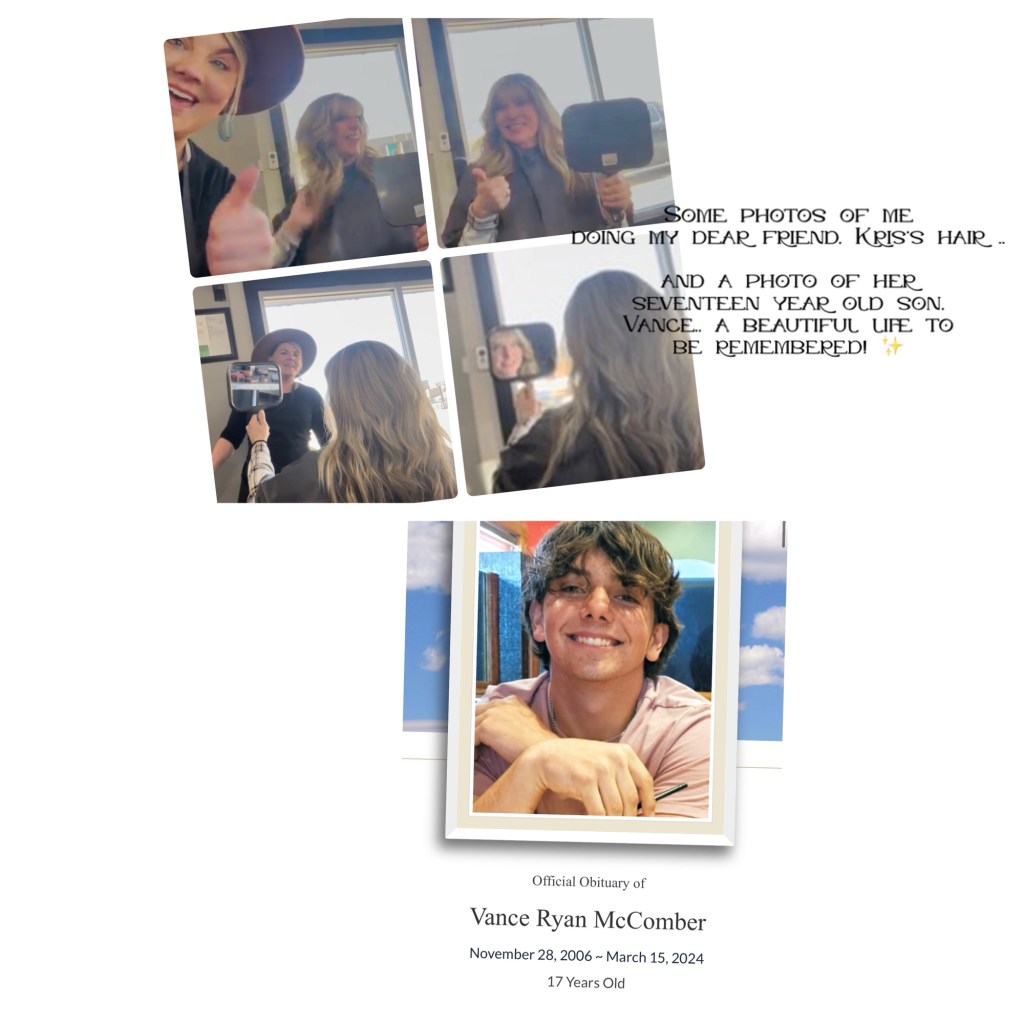 She is going through the worst possible thing anyone could imagine going through! She lost her youngest child, her handsome son, Vance who was seventeen years young!๐ His life was taken doing what he loved~ cruising in his Camaro with some of his closest friends.